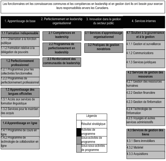Représentation de l'architecture des activités de programmes de l'École de la fonction publique du Canada.
