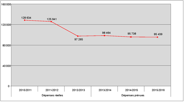 En 2012-2013, le total des passifs a diminué principalement en raison de la réduction des dépenses de fonctionnement, ce qui s'est traduit par une amélioration de la situation financière nette du ministère.