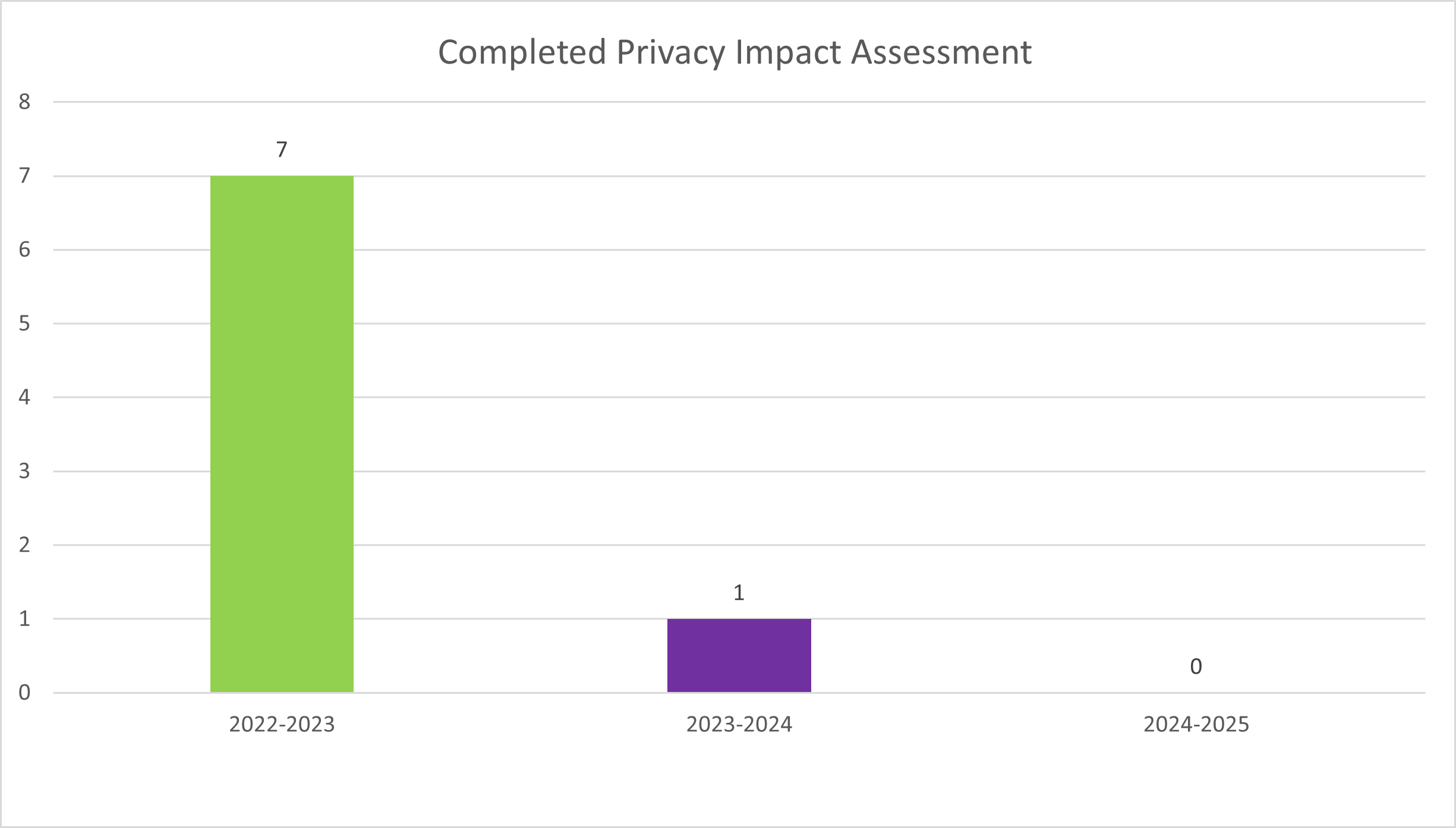 - In 2024-2025, 0 Privacy Impact Assessments were implemented.