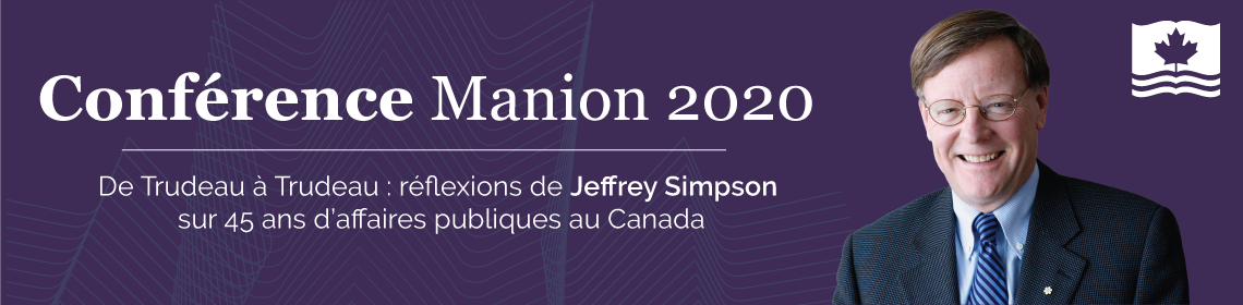 Cette année, la Conférence Manion se penche sur plus de 40 ans de politique publique canadienne, en se demandant comment les leçons tirées peuvent nous aider à façonner l'avenir. L'événement met en vedette Jeffrey Simpson, commentateur politique chevronné du Globe and Mail, lauréat du prix Donner 2013 et officier de l'Ordre du Canada. M. Simpson fait des reportages sur les politiques publiques canadiennes en plus de les commenter depuis le règne de Pierre-Elliott Trudeau, en plus d'avoir écrit neuf livres sur le sujet.
