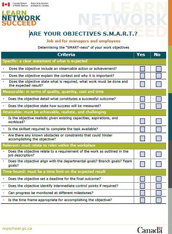 SMART objectives and performance indicators (TBS) (GCintranet)